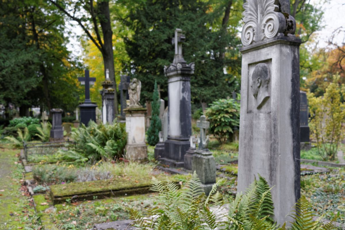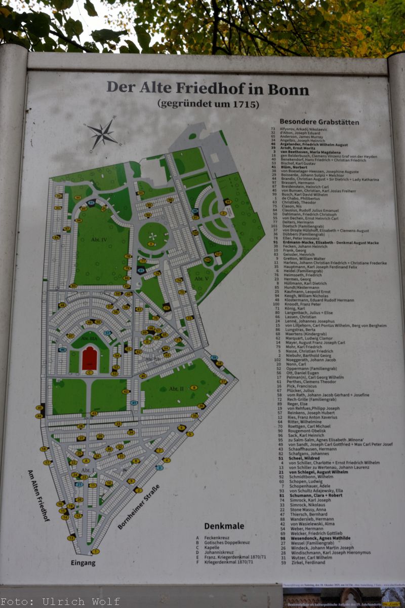 Auf diesem Friedhof ist das Grab von Clara und Robert Schuhmann, Norbert Blüm und anderen Persönlichkeiten.Fotos von Oktober 2025.